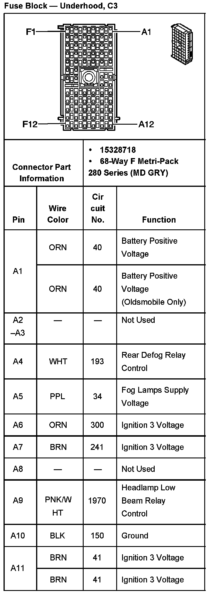 Fuse Block - Underhood, C3 Part 3: