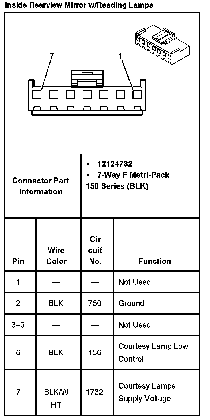 Inside Rearview Mirror W/Reading Lamps: