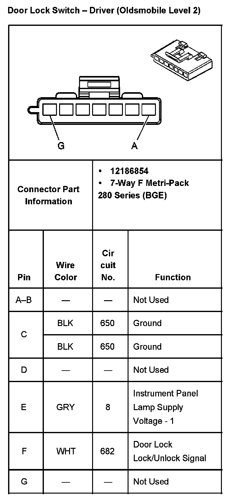 Door Lock Switch - Driver (Oldsmobile Level 2):