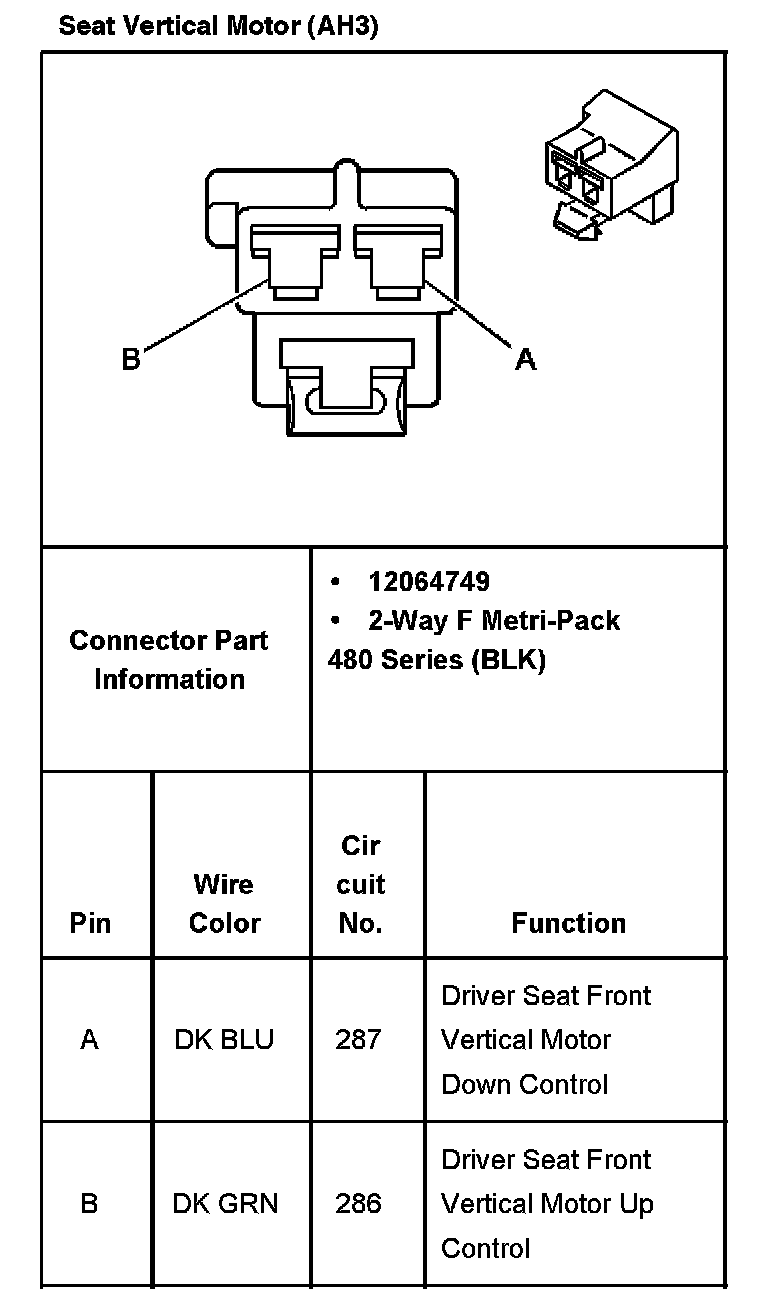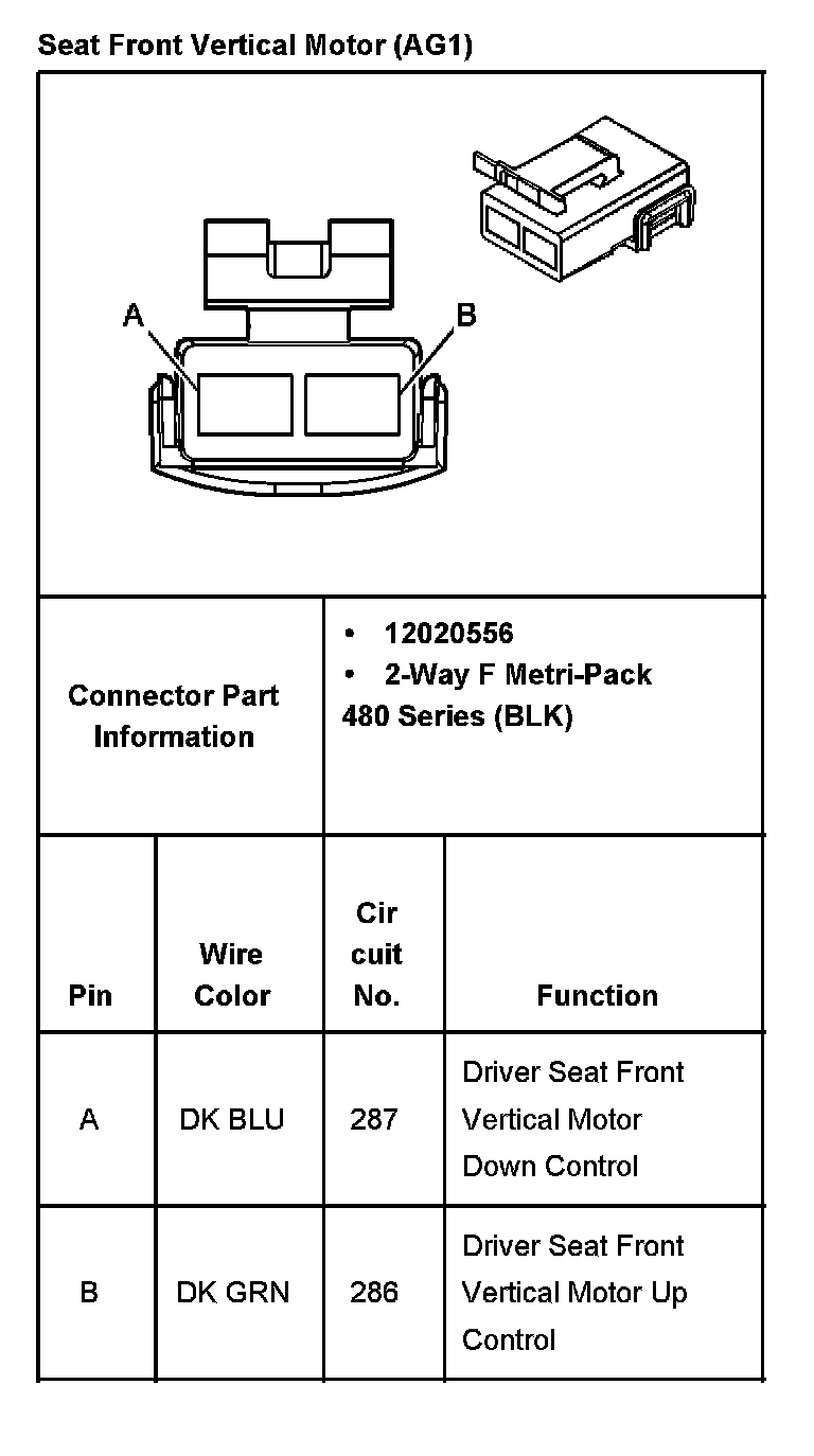 Seat Rear Vertical Motor (With RPO Code AG1):