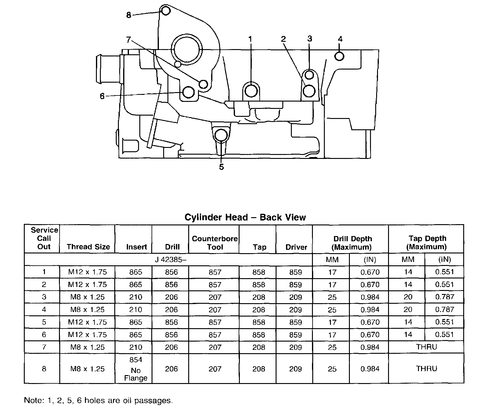 Note: 1, 2, 5, 6 holes are oil passages.