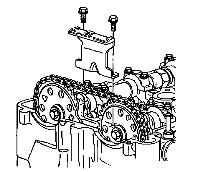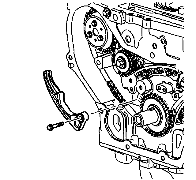 21. Install the timing chain tensioner guide through the opening in the top of the cylinder head.