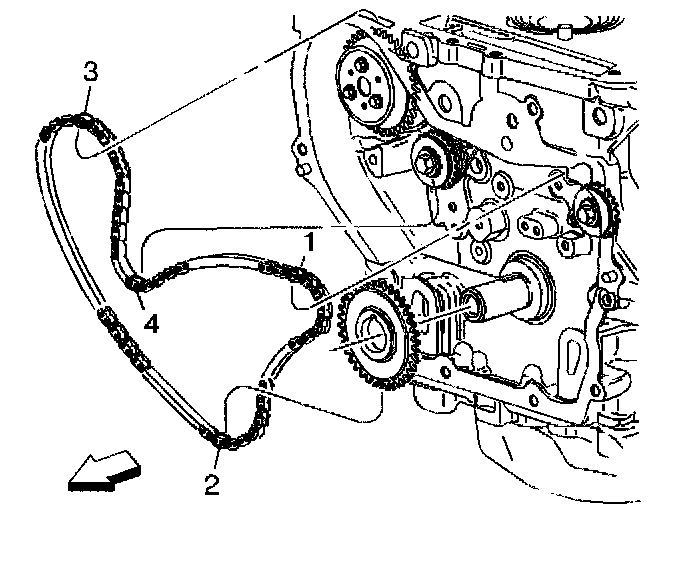 5. Place the chain (3) on the water pump drive sprocket (alignment is not critical).