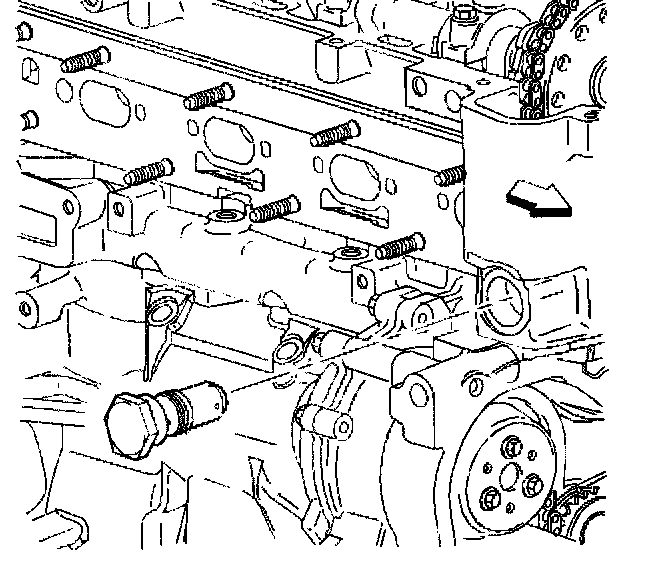 26. Apply sealant, GM P/N 12345382 (Canadian P/N 1095349) compound to thread and install the timing chain guide bolt access hole plug.