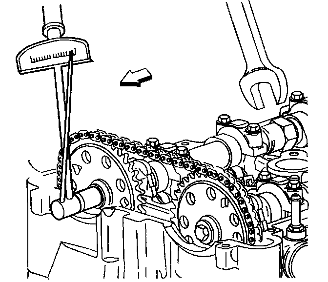 Important: To rotate the camshaft, use a 24 mm open-end wrench on the camshaft flats. Camshaft should be rotated in a clockwise direction only, facing camshaft sprockets from the passenger side of the vehicle.