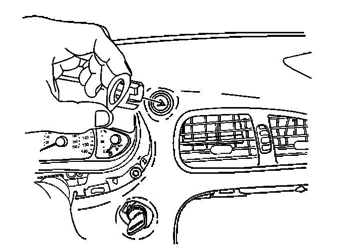 7. Install the hazard warning switch bezel to the I/P. Press the bezel into place until fully seated.