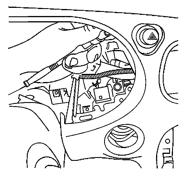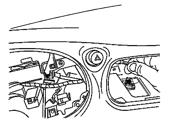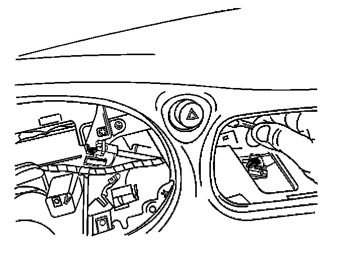 4. Remove the left side bolt from the hazard warning switch through the instrument panel cluster pocket.