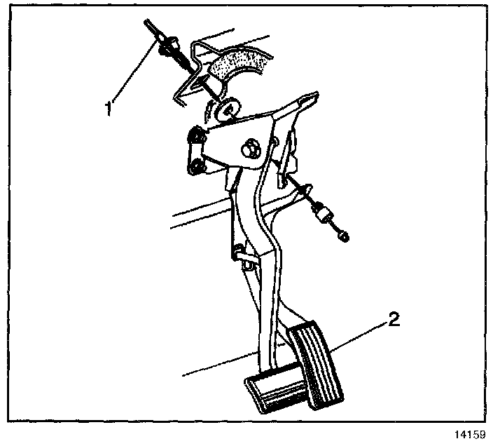 3. Slip the accelerator cable (1) through the slot in the rod and then install the retainer in the rod, being sure that the retainer is seated.