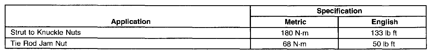 Fastener Tightening Specifications: