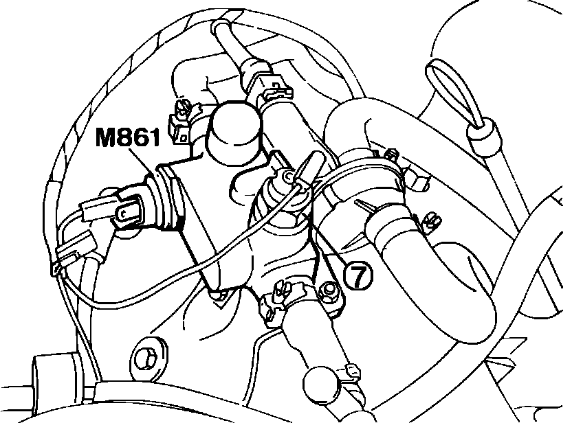 6. If the engine is hot (coolant temperature greater than 18°C). Disconnect wire 47C from the thermocontact (7), Fig. 27, and put it to ground. The OCR meter should read 50%.