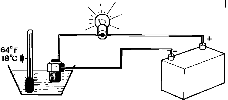 b. When the water temperature reaches 16°C to 20°C, (61°F to 68°F), it should open the circuit and shut off the test light.