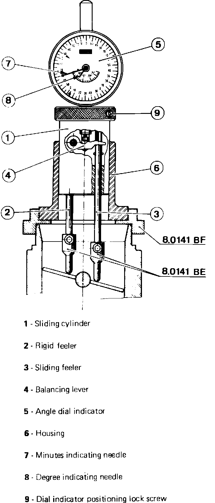 The following procedure requires Solex angle measuring tool 9797.16, holding clamp 9797.15, and angle measuring tool support base 8.0141 BF and angle measuring tool extensions 8.0141 BE from tool kit 8.0141 ZB, Fig. 3.