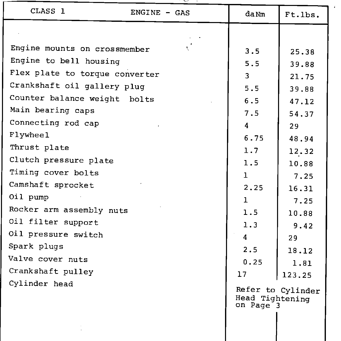 Specifications - Torque