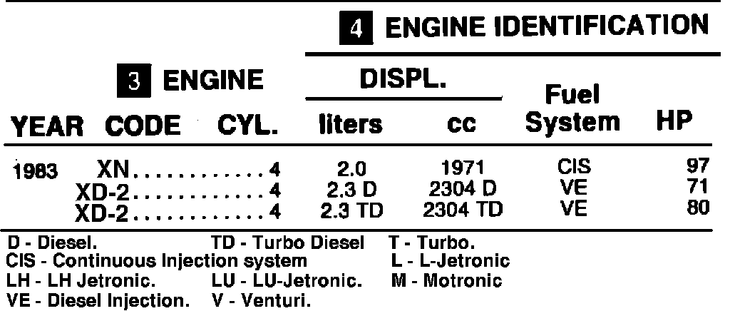 1984-81 - 6th character of VIN. All others - Prefix to engine number, stamped on engine block.