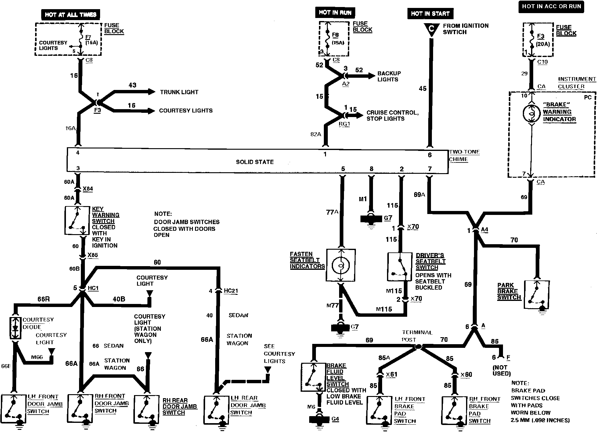 Fig. 6 Brake Warning, Ignition Key Warning & Seatbelt Warning Wiring Circuit.: