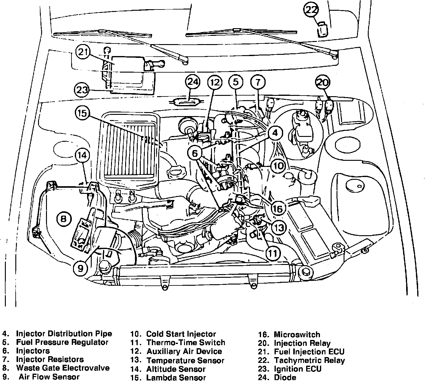 Fig. 8 COMPONENT LOCATION -- UNDERHOOD VIEW: