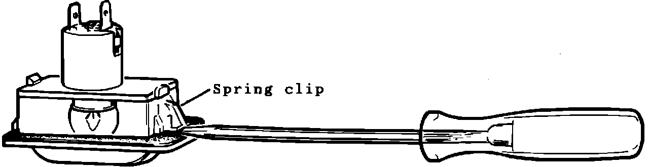 If the trunk lid cannot be opened, try to remove right license plate lamp by inserting a flatbladed screwdriver between the lamp rubber gasket and the spring clip (on one side of lamp only) and carefully prying the lamp out, while pushing the lamp body as hard as possible towards the spring clip side, Fig. 2.