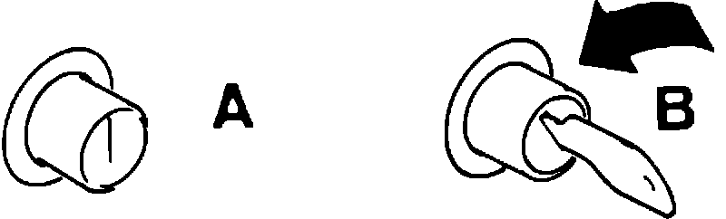 From position A (key slot toward the top) insert key and turn it to the left until the point of resistance, position B, push plunger in using key. (Approx. 11 o'clock position)