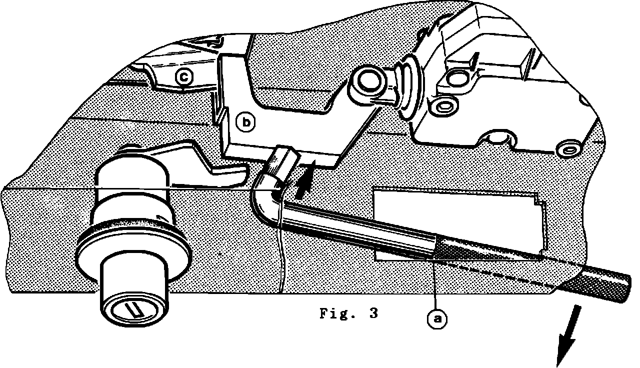 Should this not work, push directly against the lock release lever (c), Fig. 3.