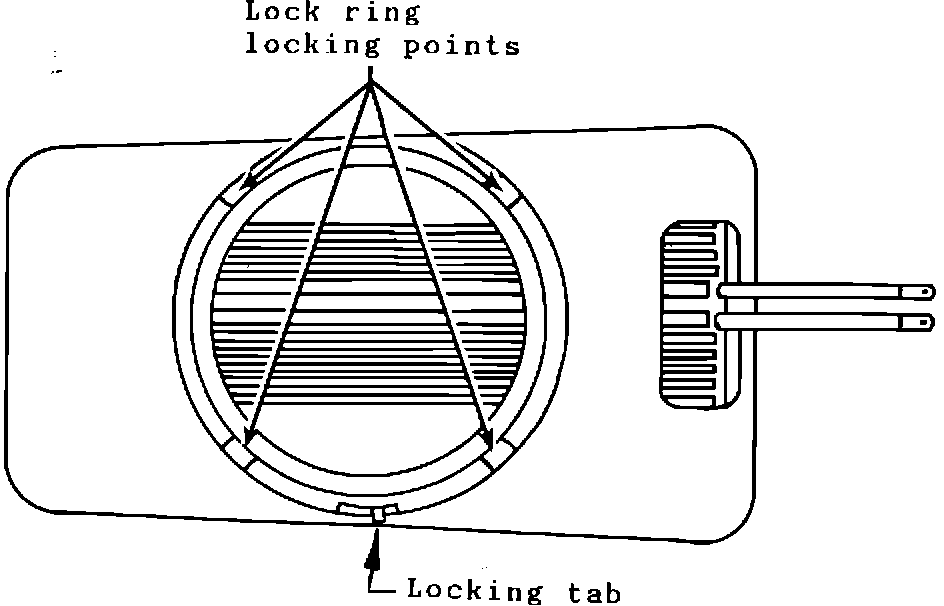 ^ Ensure that the lock ring locking points are open in the new glass/backing plate unit, with the locking tab in the right position when viewed from the back side (as shown on page 1).