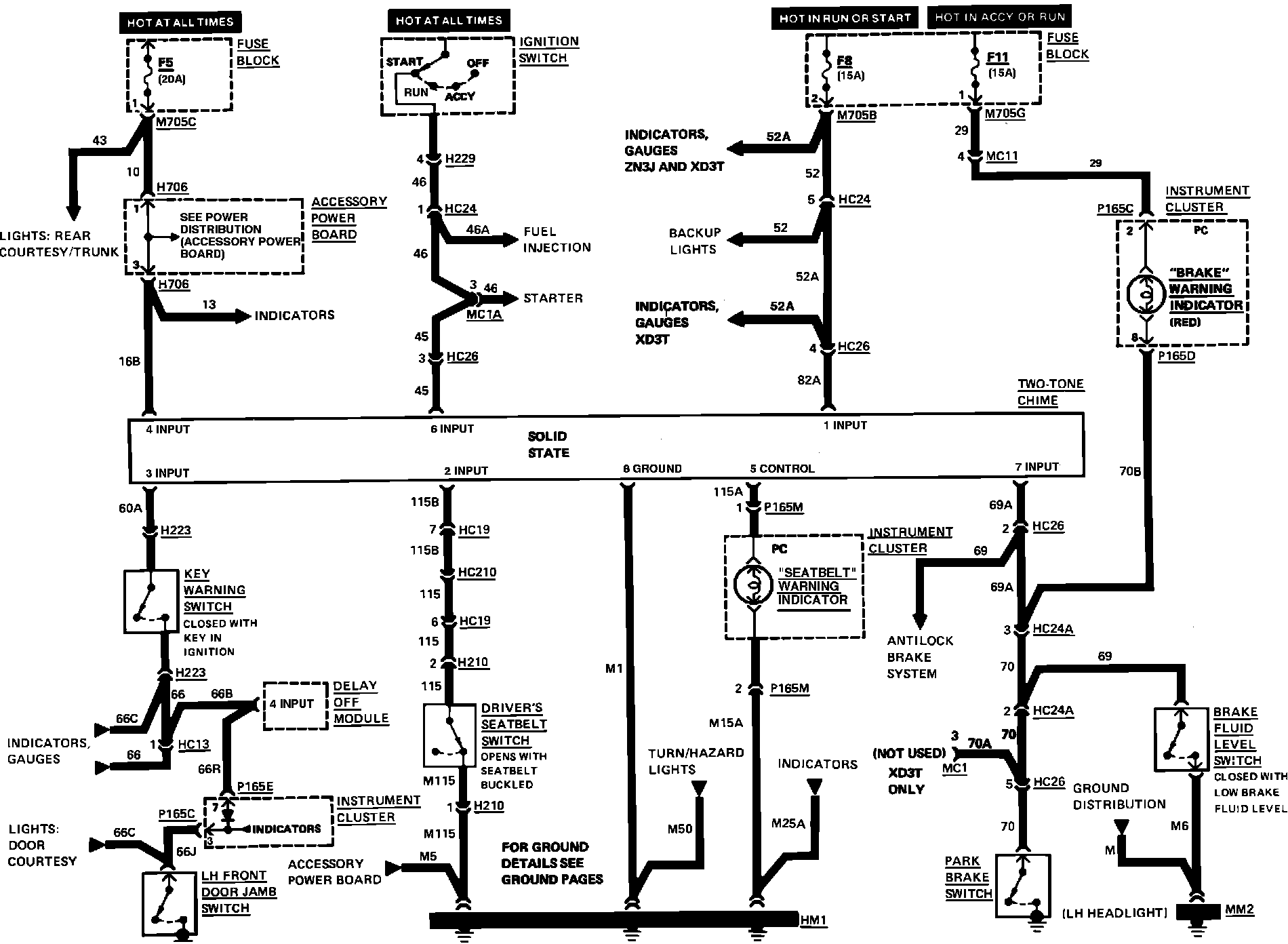 Fig. 41 Key, Seatbelt, Brake Warning Wiring Circuit: