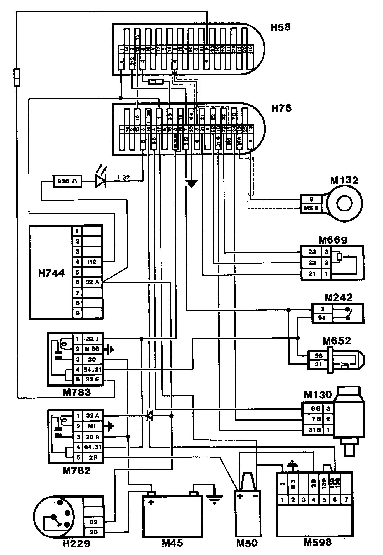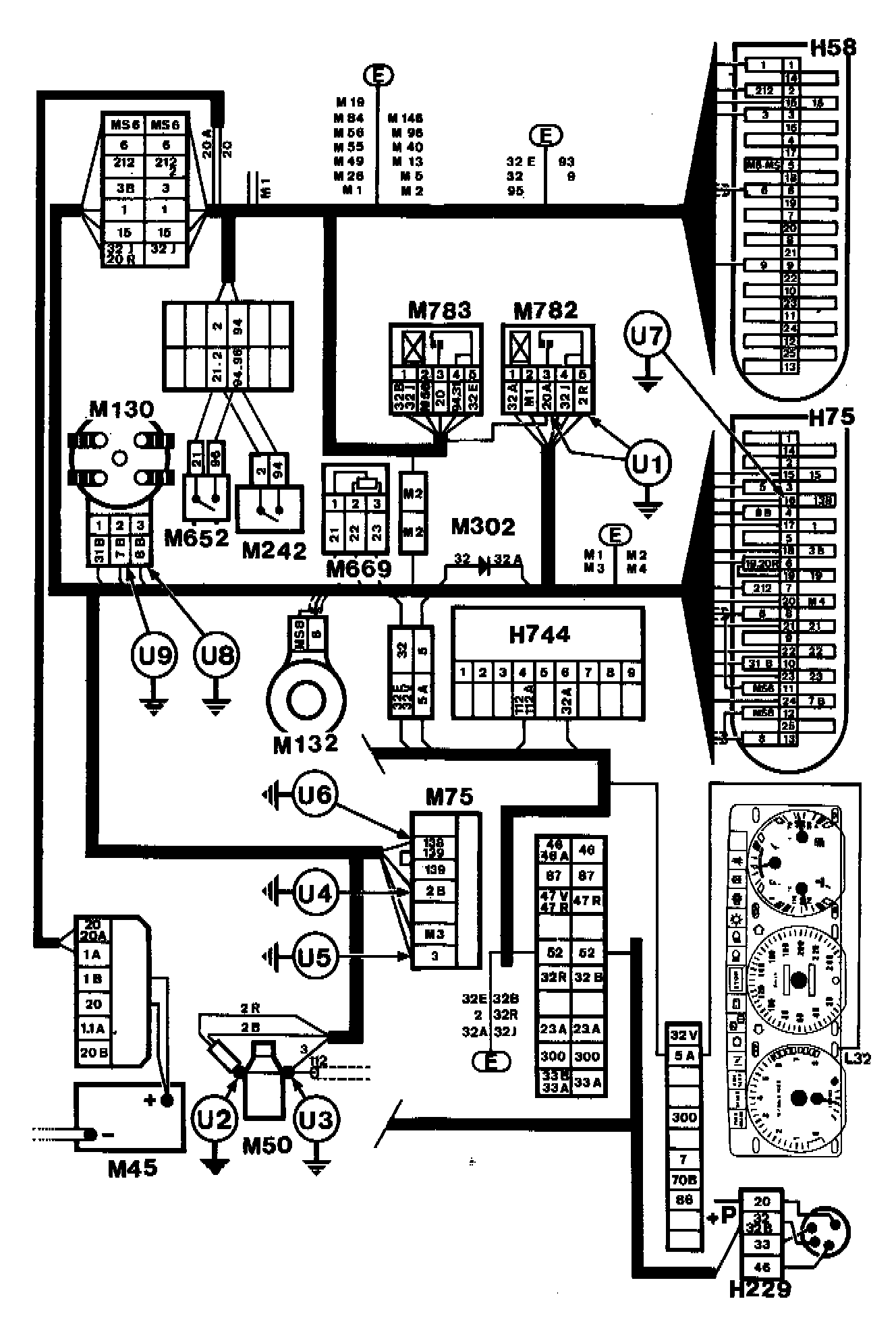 The vehicle is divided into 4 compartments by letters (M.P.H.C.) placed before a reference number according to the geographical location of the component.