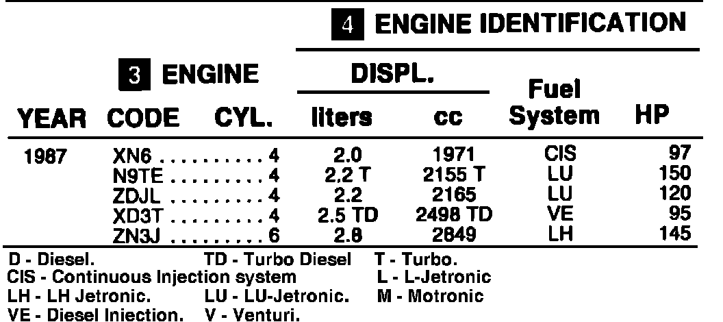 1984-81 - 6th character of VIN. All others - Prefix to engine number, stamped on engine block.