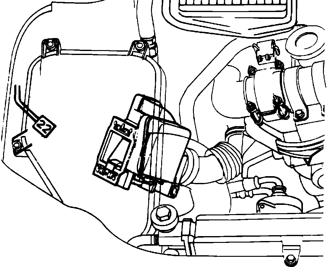 5. Connect a digital voltmeter to the connector #22, located along the right inner front fender, near the air filter assembly.