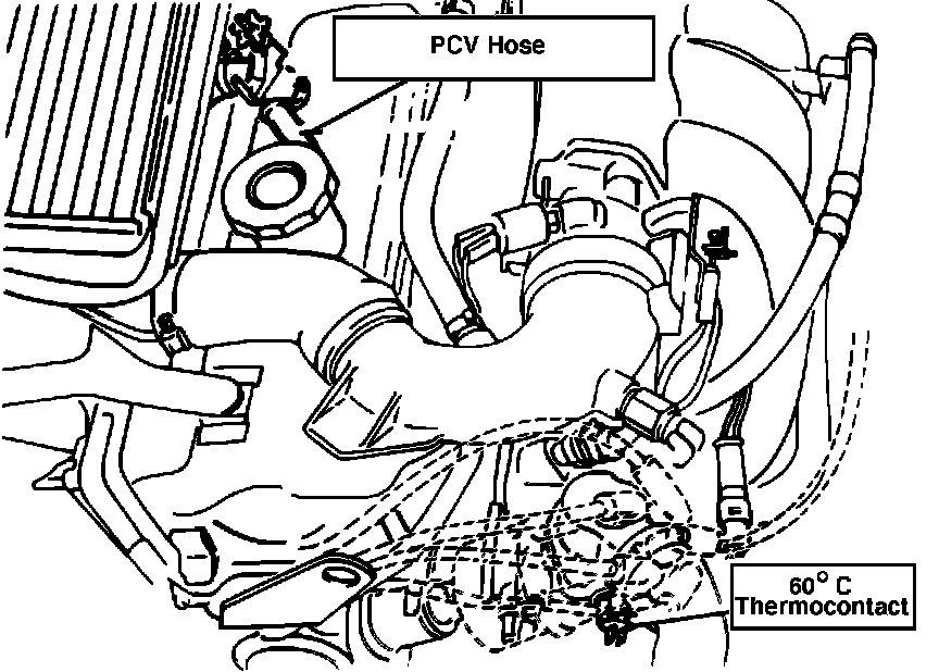 14. Reconnect the 60°C thermocontact and the PCV hose.
