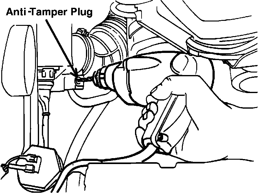 drill off-center, with a (4.5mm) bit, into the central portion of the do not tamper plug on the air flow sensor to a depth of (5mm) maximum.