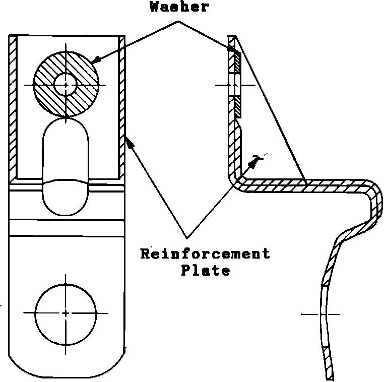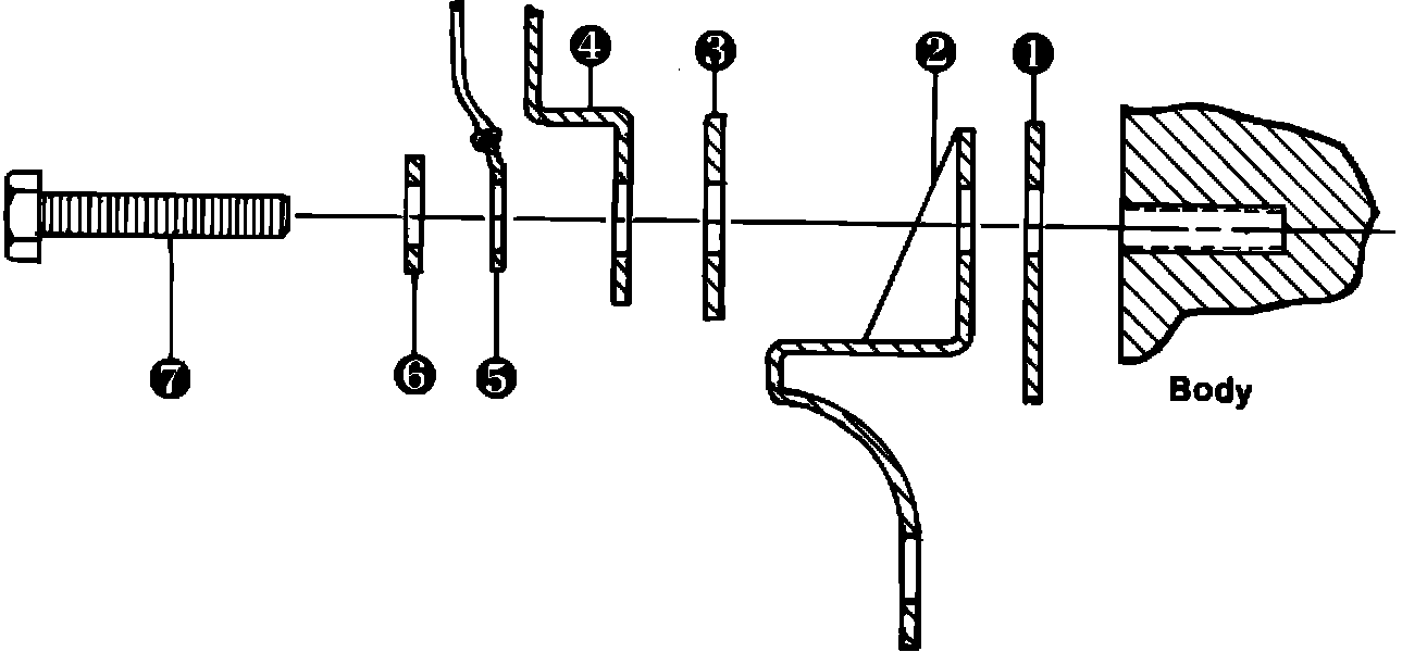 - When installing the modified bracket, add the supplied washer on top of the bracket mounting hole to further stiffen the area and create a larger bracket to body contact surface. (See Fig. 1)