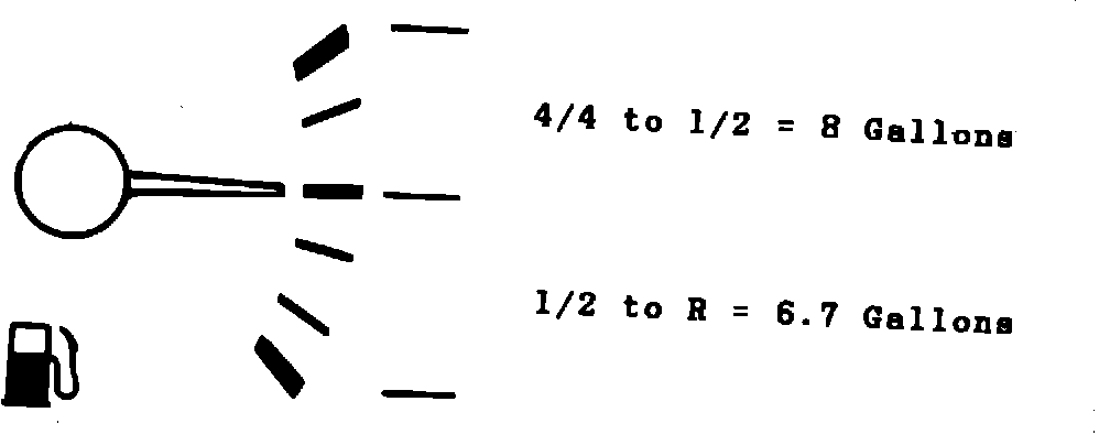 Note: Fuel gauge calibration non-linear, therefore you can drive a greater distance from full to half (8 gallons) than from half to reserve (6.7 gallons).