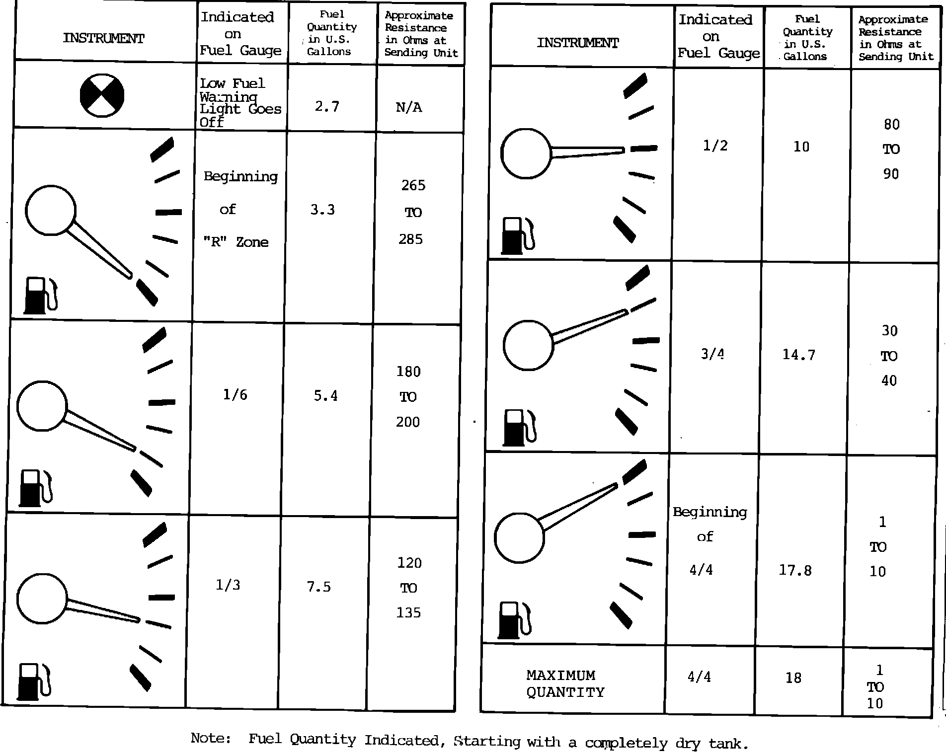3) Fuel Gauge Markings and Corresponding Average Fuel Quantity in U.S., Gallons.*