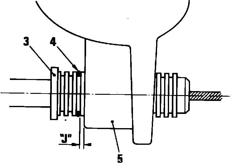 4. Insert lock pin (4) in a position to ensure least amount of play between pin and manifold (5).