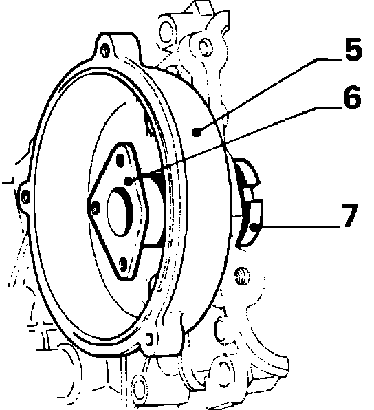 9. Install distributor body (5) on timing chain cover, then install rotor support (6) together with the drive (7), Fig. 37.