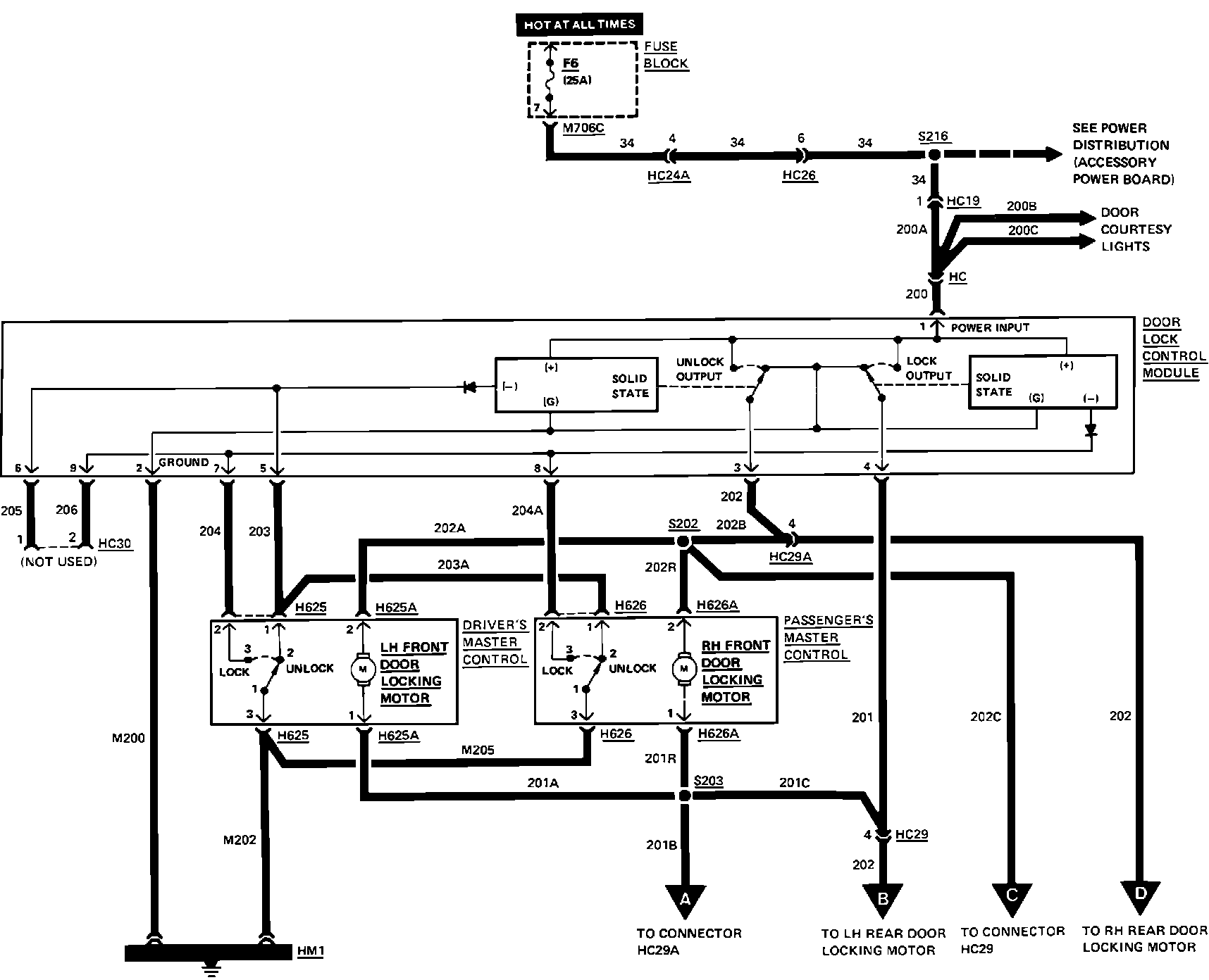 Centralized Power Door Locks Wiring Circuit. Less Remote Control: