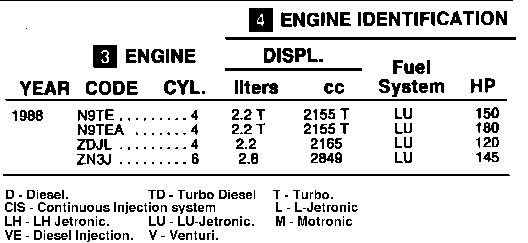 1984-81 - 6th character of VIN. All others - Prefix to engine number, stamped on engine block.