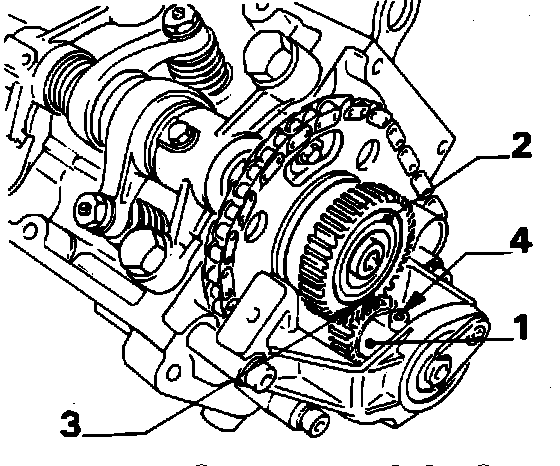 9. Install distributor body on timing chain cover, then install rotor support together with drive.