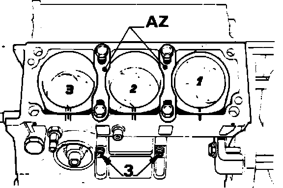 13. Remove cylinder head bolts, cylinder head and gaskets.