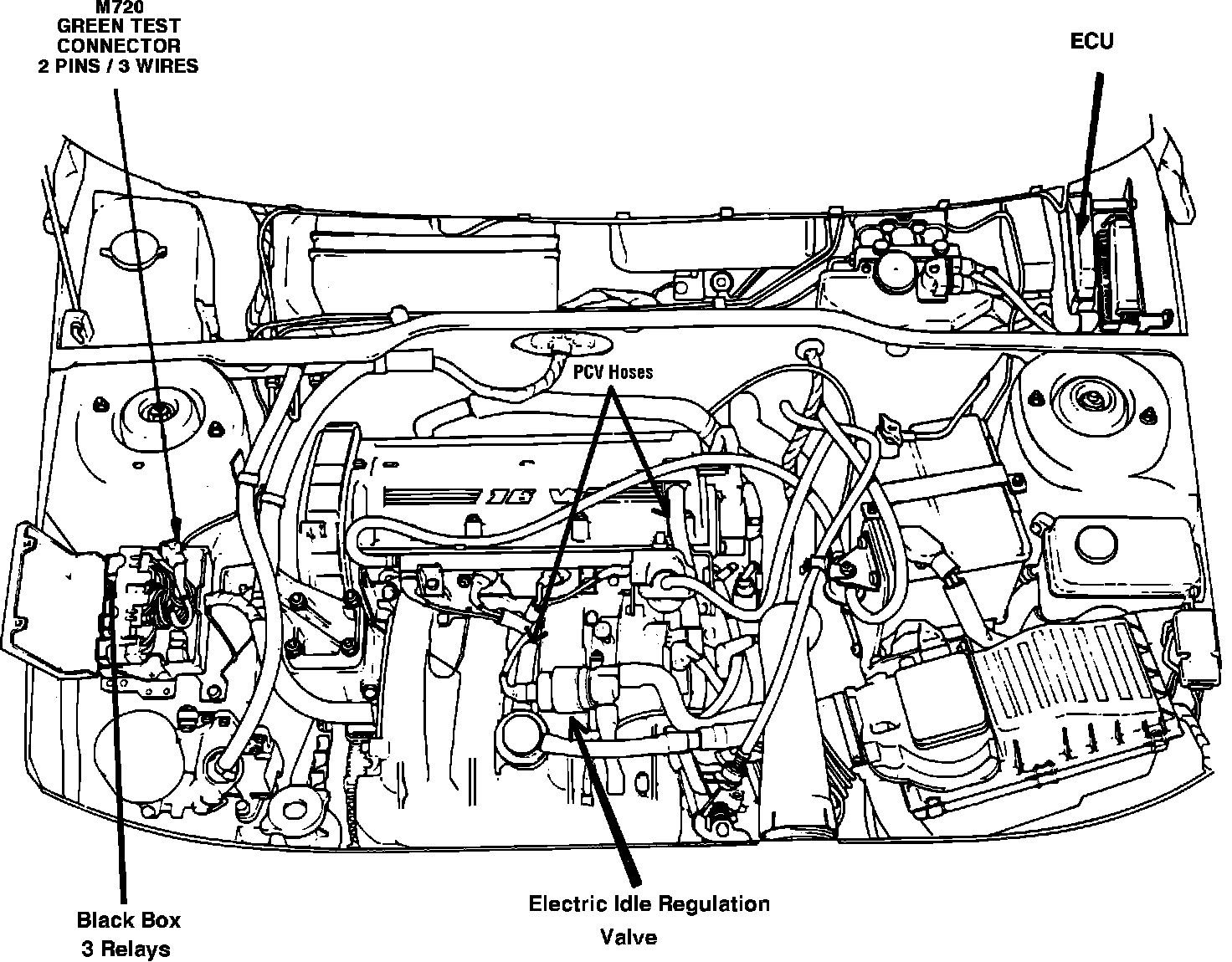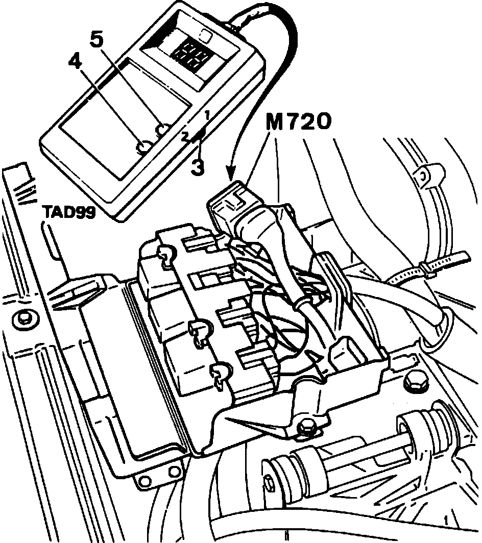 1. Connect the tester to the green 2-pin connector (M720) and to the battery.