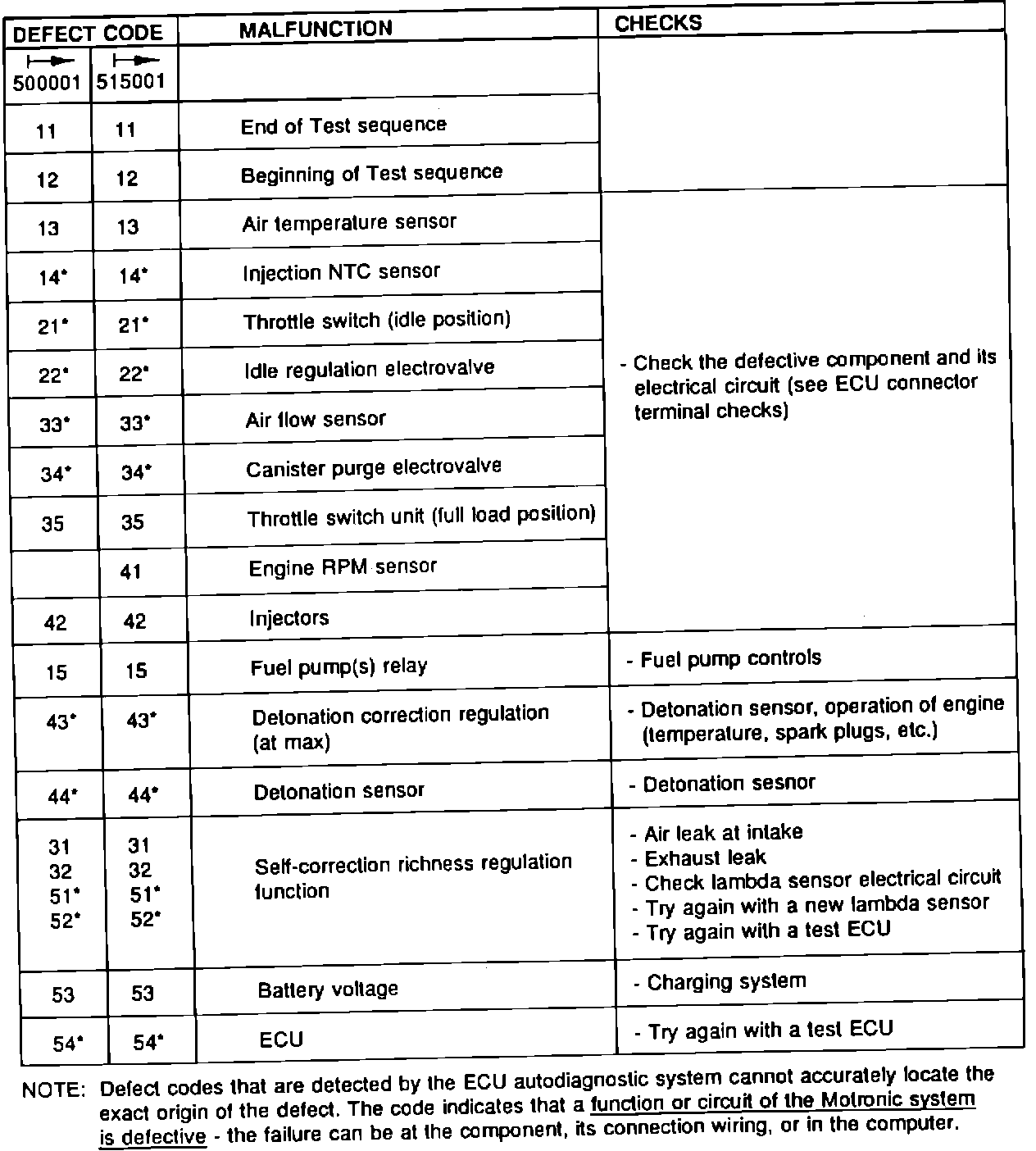 SELF TEST OF THE MOTRONIC SYSTEM XU9J4