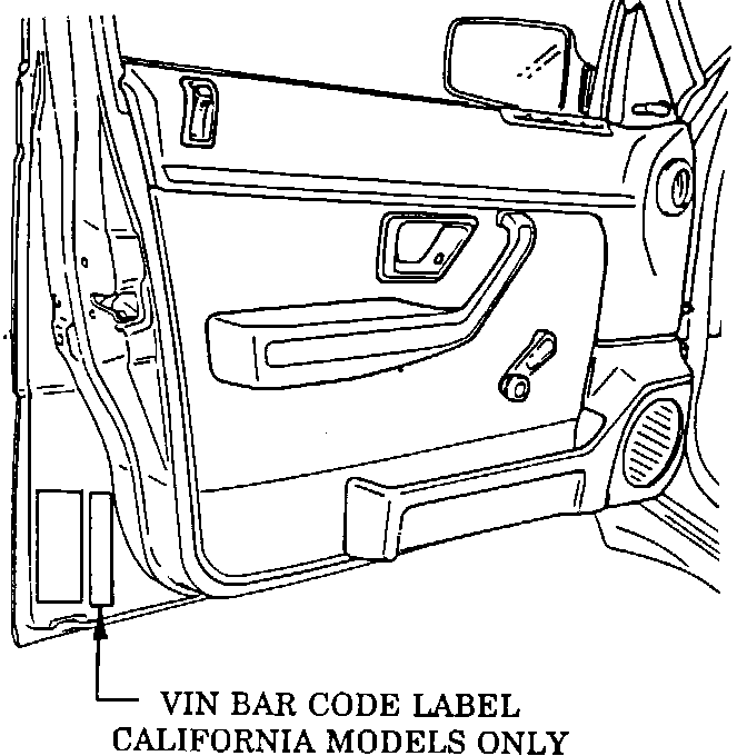 The VIN bar code label is located on the lower inside edge of the left front door, as shown.