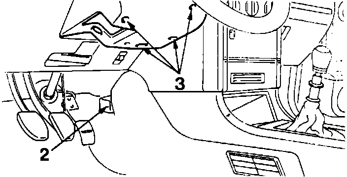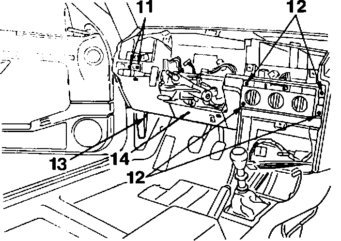 - Remove 10 mm bolts from underdash crash pad (14)