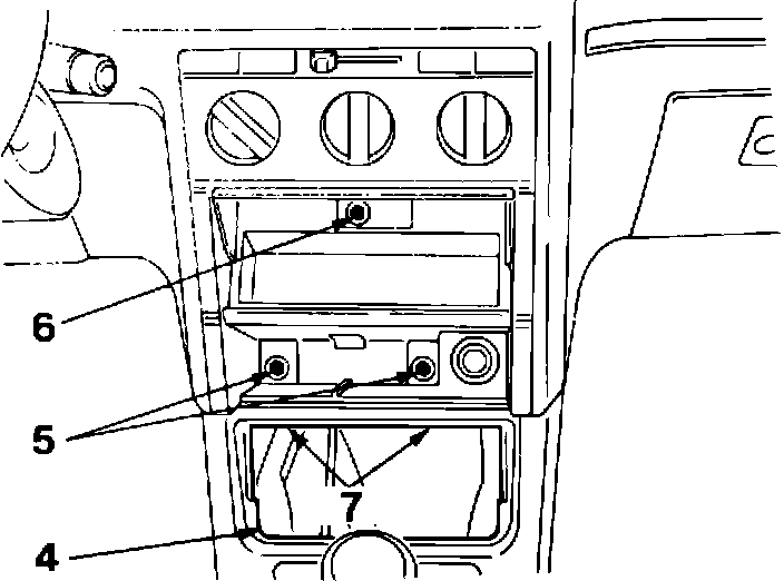 - Remove screws (5) and (6) behind ashtray and radio