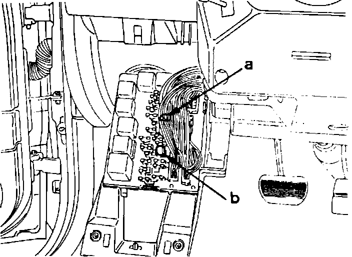 - Remove fuse box connectors (a) and (b)
