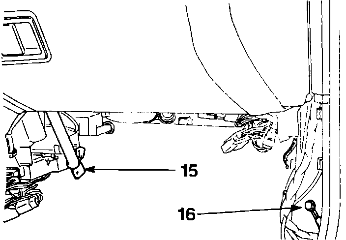 - Remove dashboard reinforcement bolt (15)