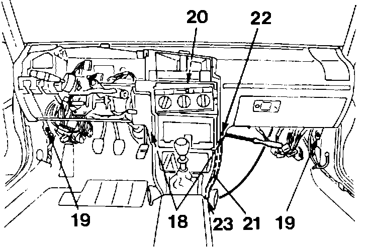 - Remove dashboard mounting bolts (18) and (19)