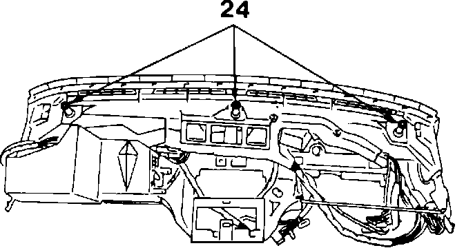 - Ensure that non-return washers (24) are in position on locating dowels before refitting dashboard to firewall