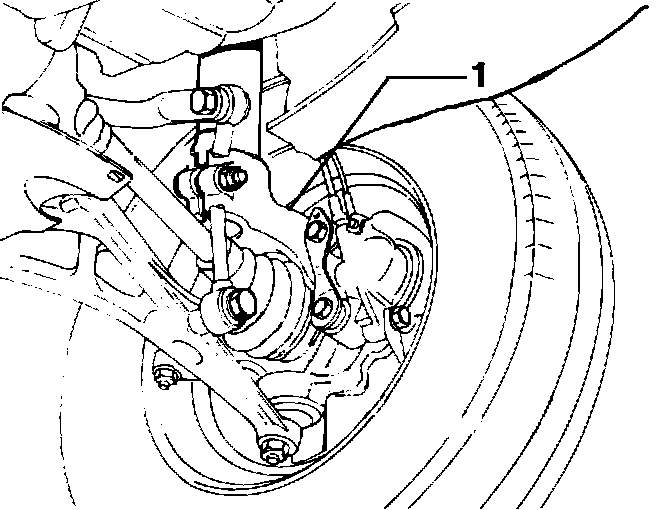 - Using a 13 mm socket, remove the bolt (1) that holds the brake hose support bracket to the spindle