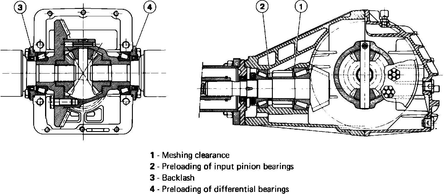 1. Clean all parts of differential assembly, Fig. 4. Spray ``Molykote 321 R'' or equivalent, into drive pinion bearing housings.